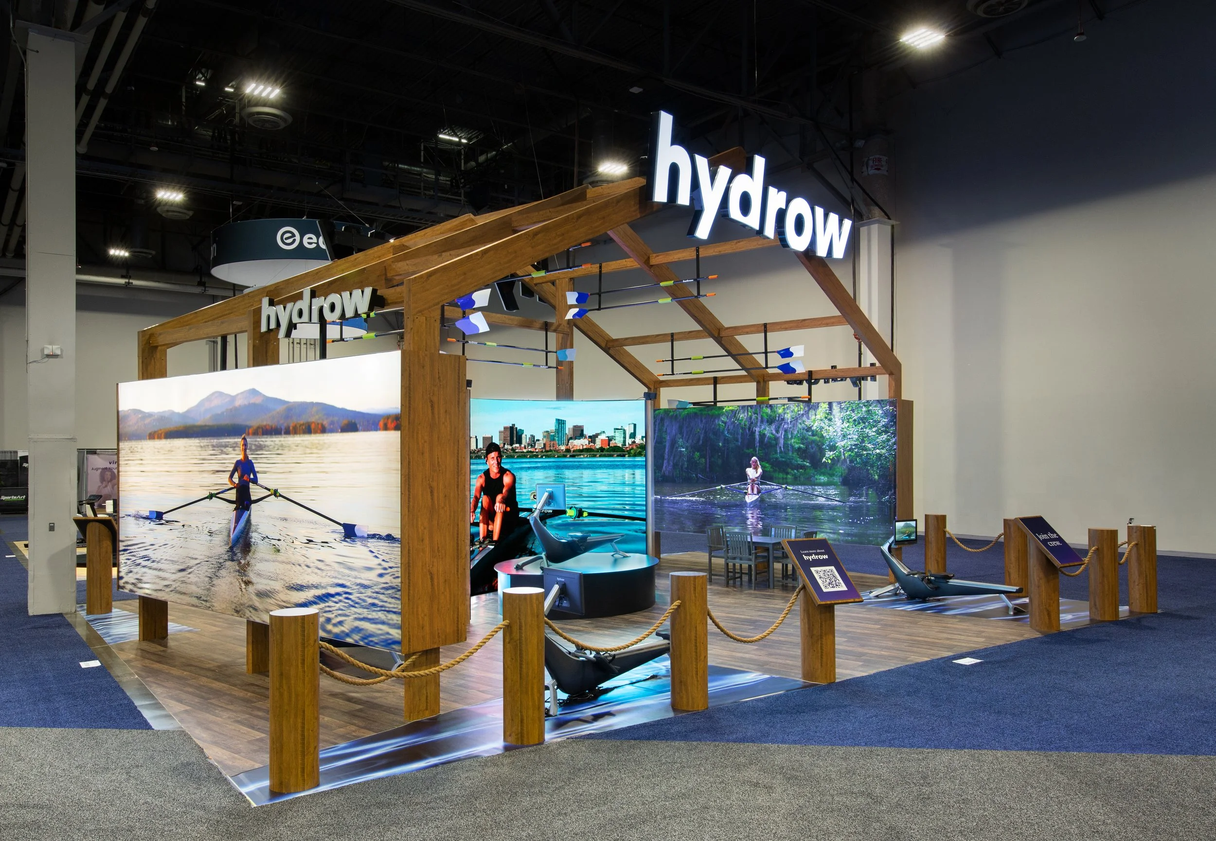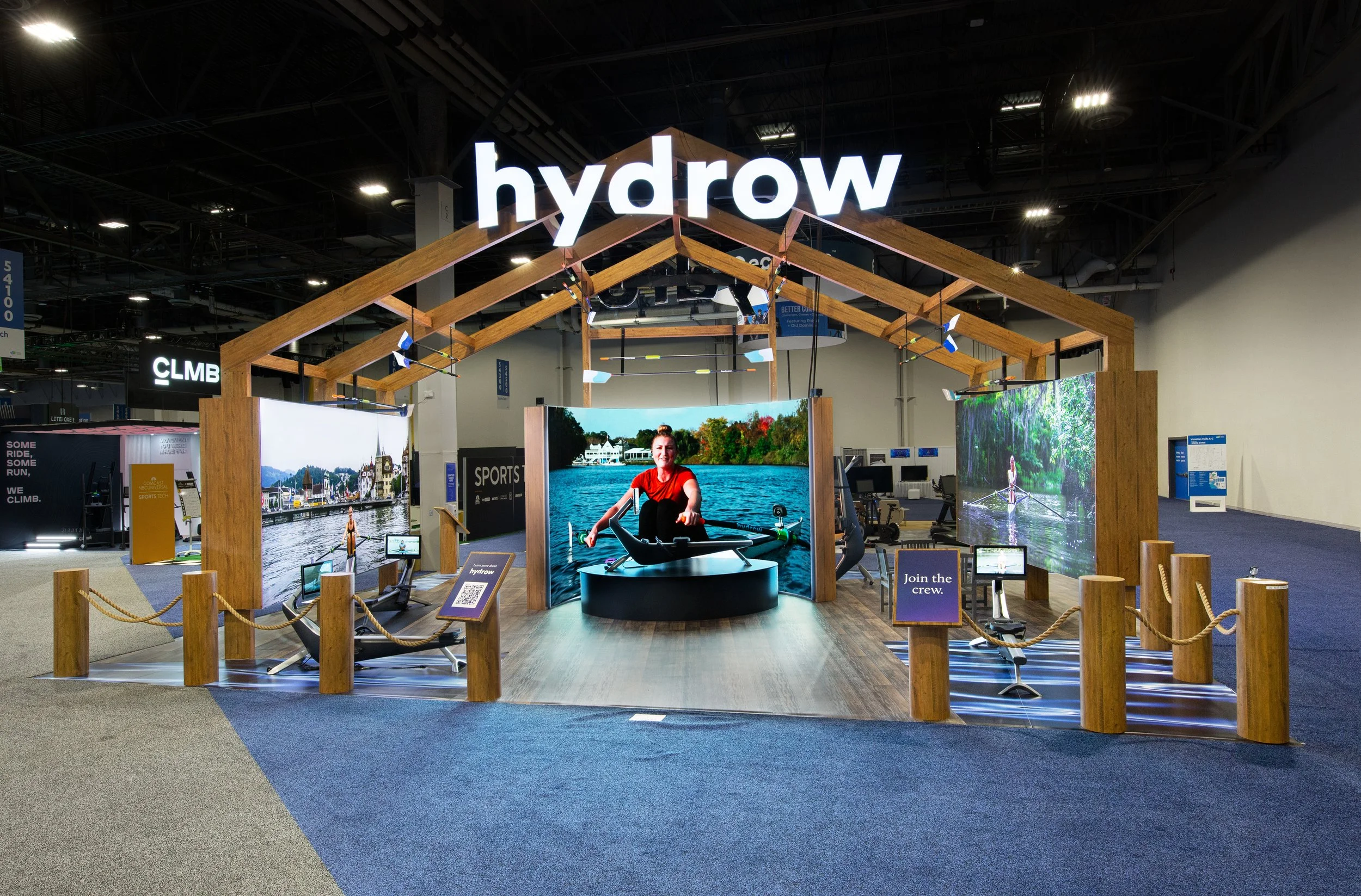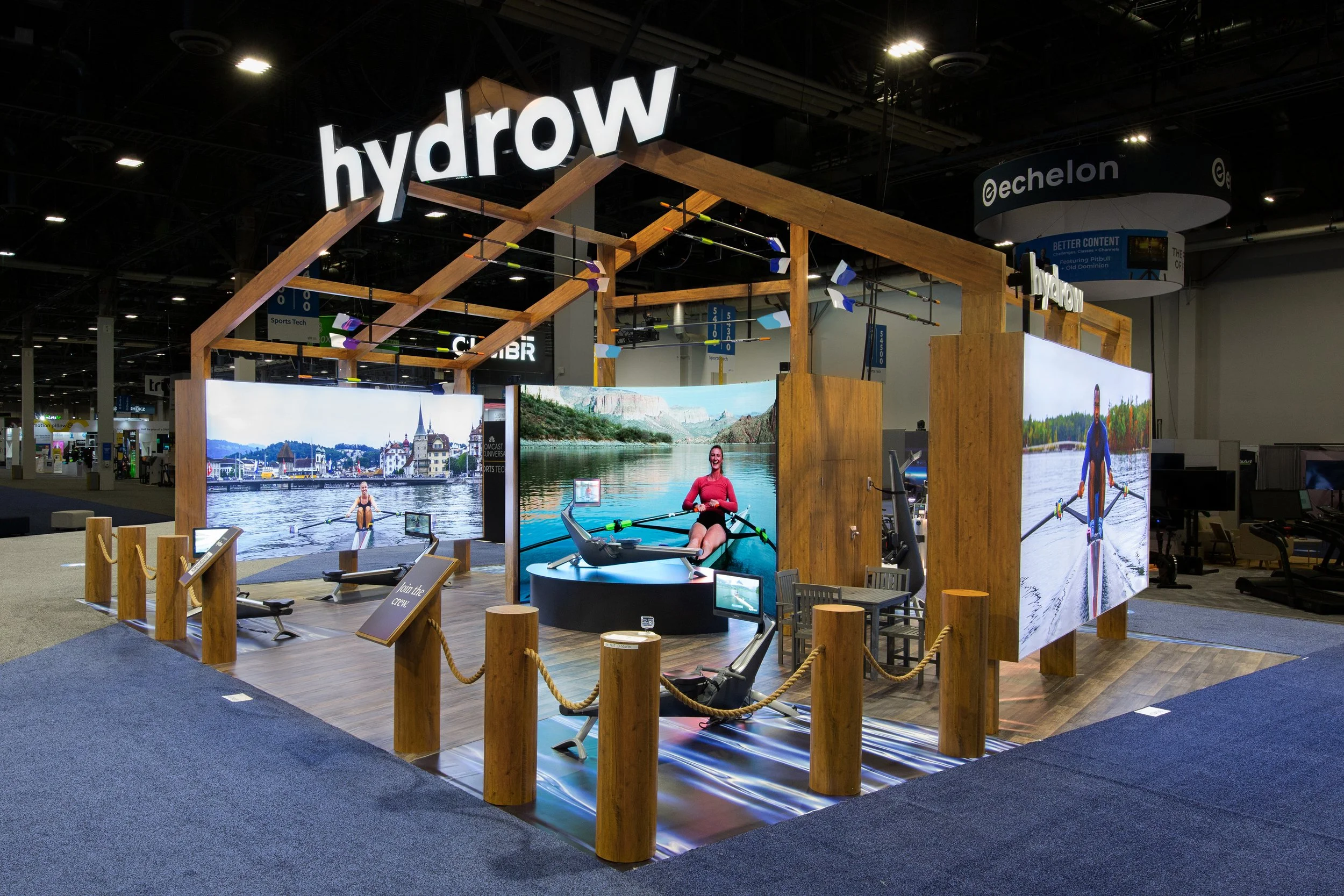 Hydrow, a brand that has grown exponentially during the pandemic, wanted to take their stand at CES as an opportunity to build brand awareness. This booth, inspired by a boat house, ended up receiving honorable mention at CES.