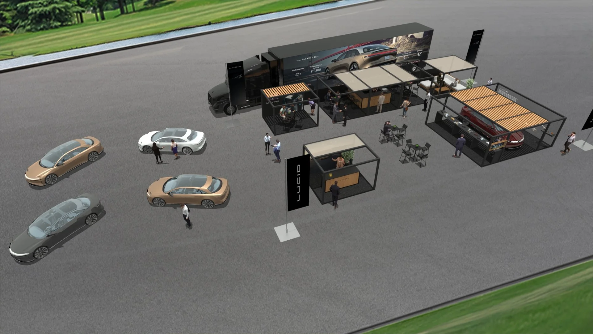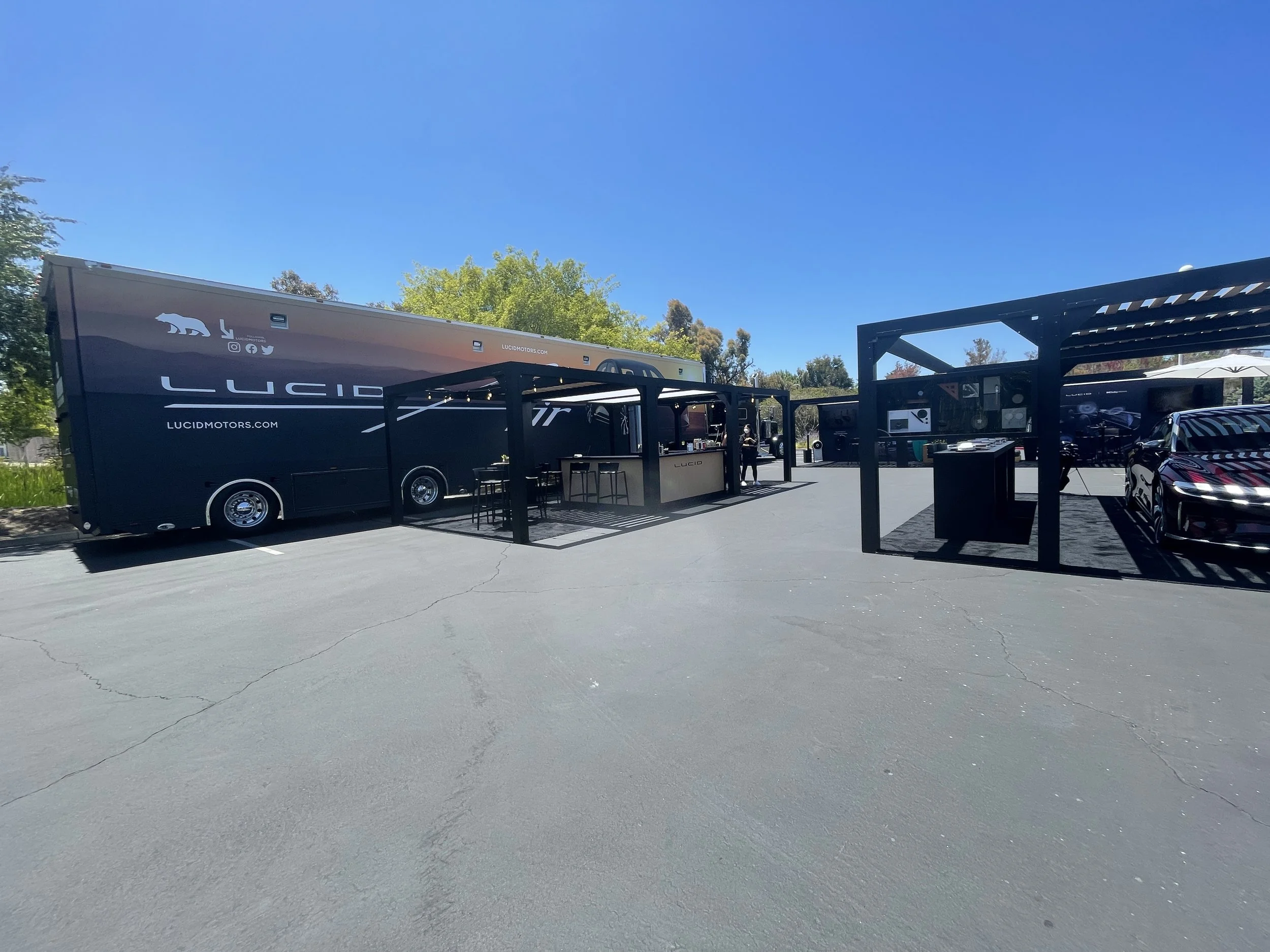 The goal for this project was to design a modular exhibit that could travel across the country, fitting inside their Lucid truck. It needed to be flexible to changes in weather, and scalable to meet the needs of each location.