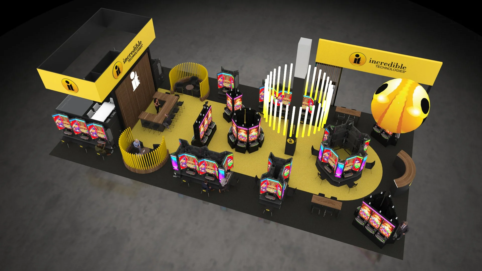 I designed this booth for Incredible Technologies at G2E. It features a bold color scheme, product-focused layout, and strong brand visibility. The client loved it so much, they’ve reused it for several years. The bubble hanging sign was from a previous concept by another designer, and I adapted it into my design at the client's request.