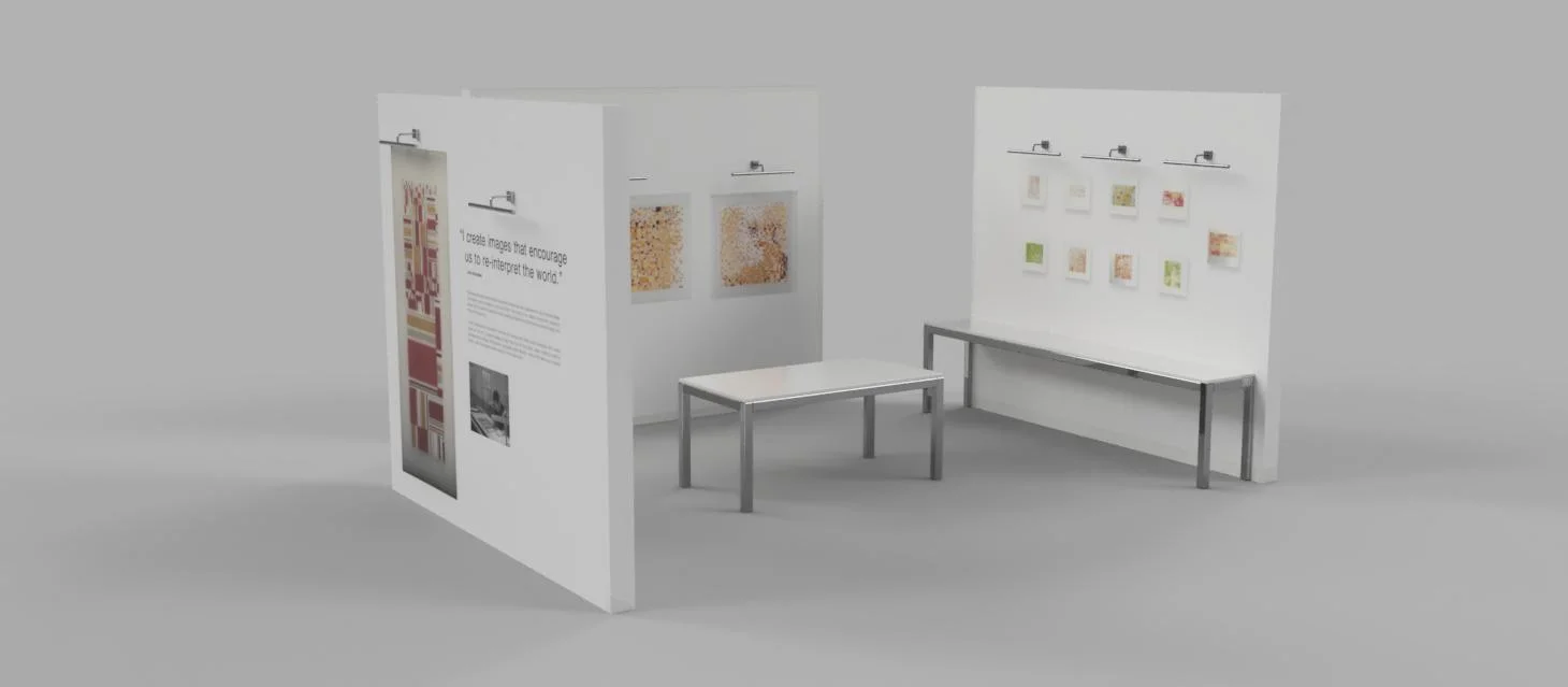 To bring an artist that creates beautiful images based on Data. The design goal is to make the space look like something between the artist own studio and an art gallery.