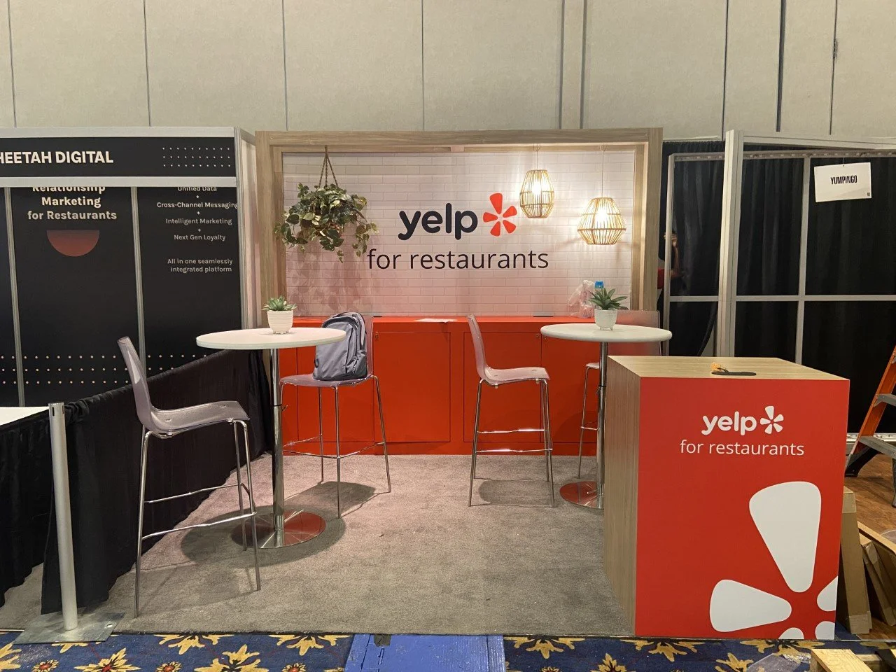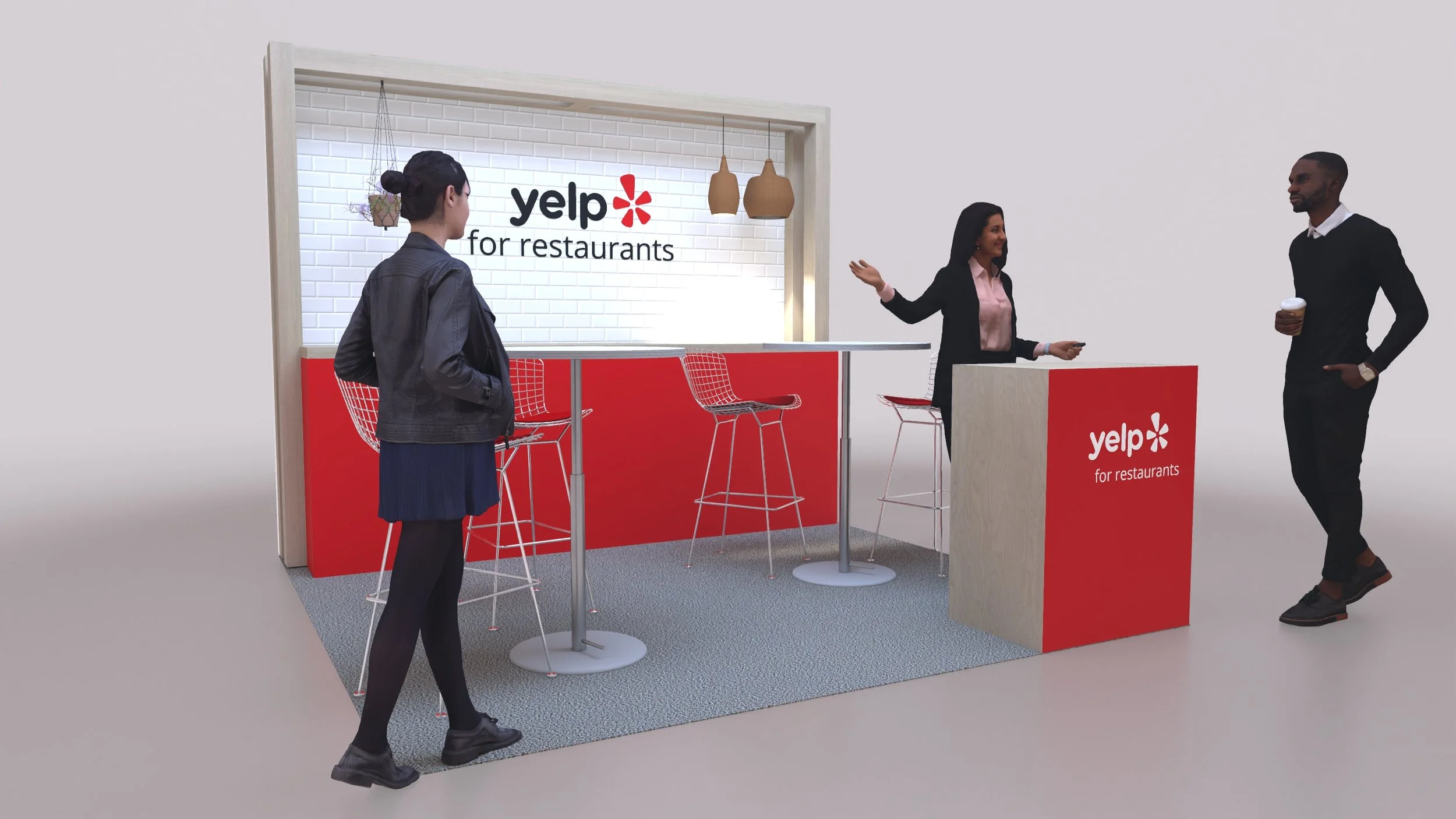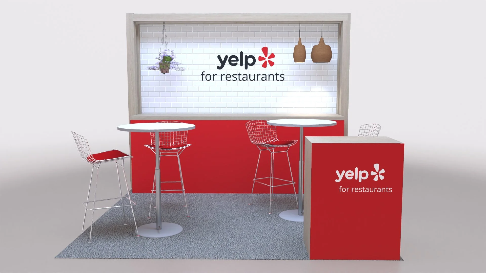For this project, the goal was to have a 10x10 space that was inviting, had storage, and resembled a modern dining space, while staying in the Yelp brand.